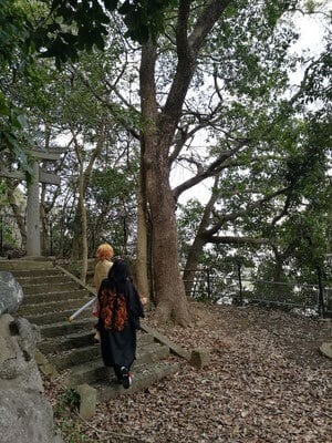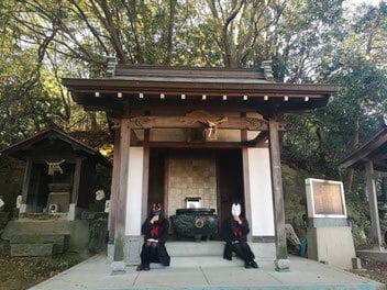 姪浜の【探題塚・埴安神社】でのコスプレ撮影を体験できます。